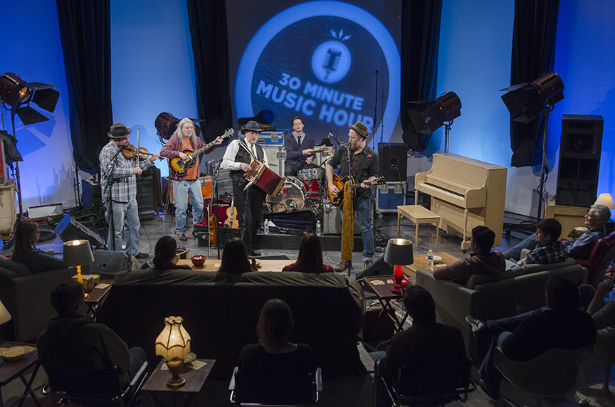 We taped the first episode of the new season of 30-Minute Music Hour in the Wisconsin Public Television studios today. The show, featuring the very fine sounds of The Cajun Strangers, will be available soon to watch online. But, we wanted our online fans to be the first people to see the show’s all-new set in the photos below. Let us know what you think!