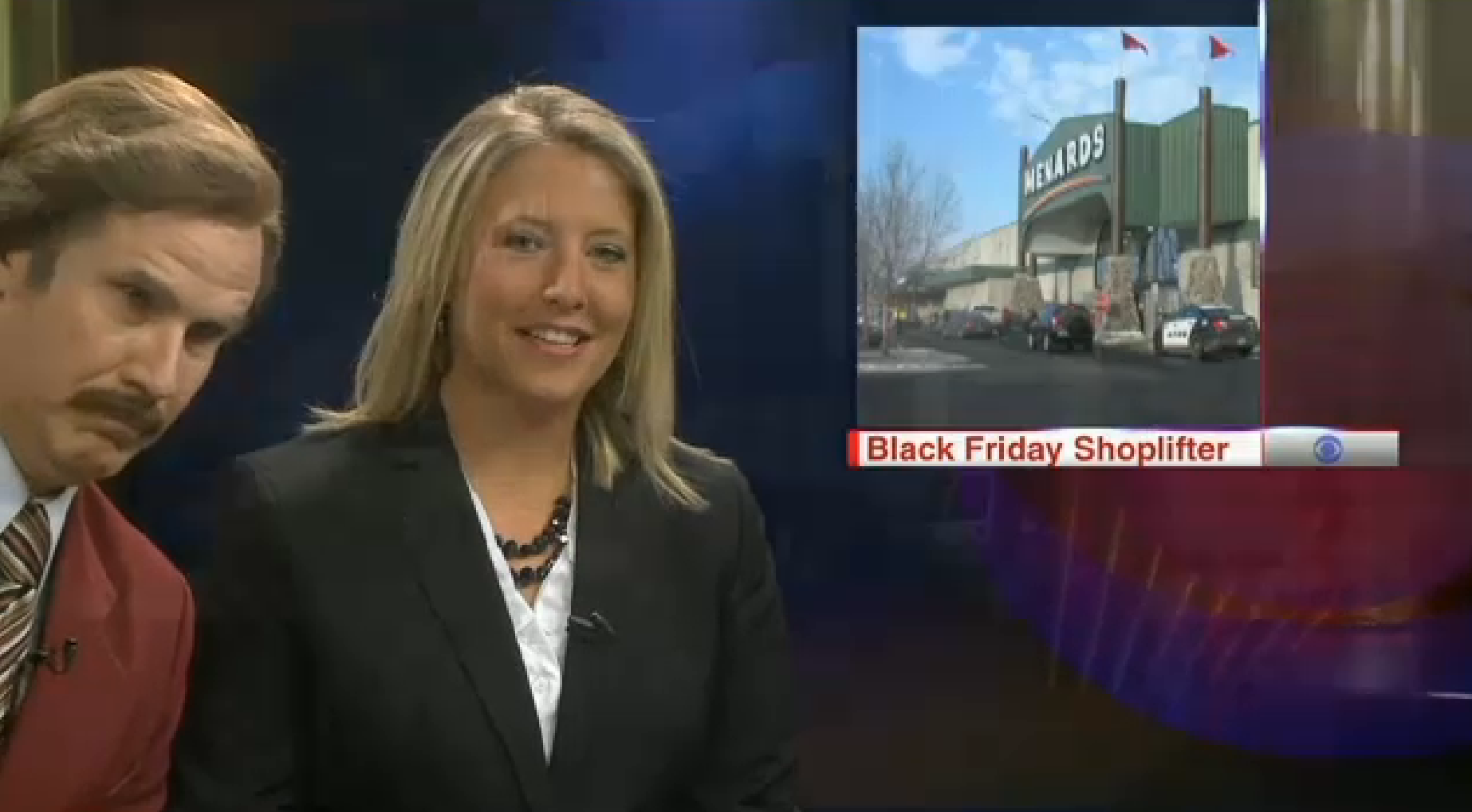 If your Thanksgiving holiday travel took you to North Dakota - specifically the Bismarck or Minot area - then you likely found a surprising treat when you tuned into the local CBS affiliate’s Saturday evening newscast. There was legendary newsman Ron Burgundy sitting at the anchor desk, ready to read all the local news - including exciting reports on Black Friday shopping and downtown holiday decorations - with the usual cast of anchors, sports reporters and meteorologists. If your travel plans didn’t include the northern plains, our colleagues at PBS NewsHour have the full 30-minute newscast streaming for you to watch on their Rundown Blog.
